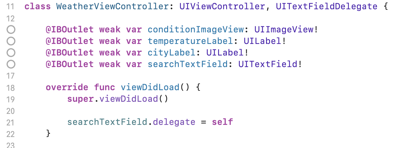 WeatherViewController class에 넣어주었고 (11번째 줄)