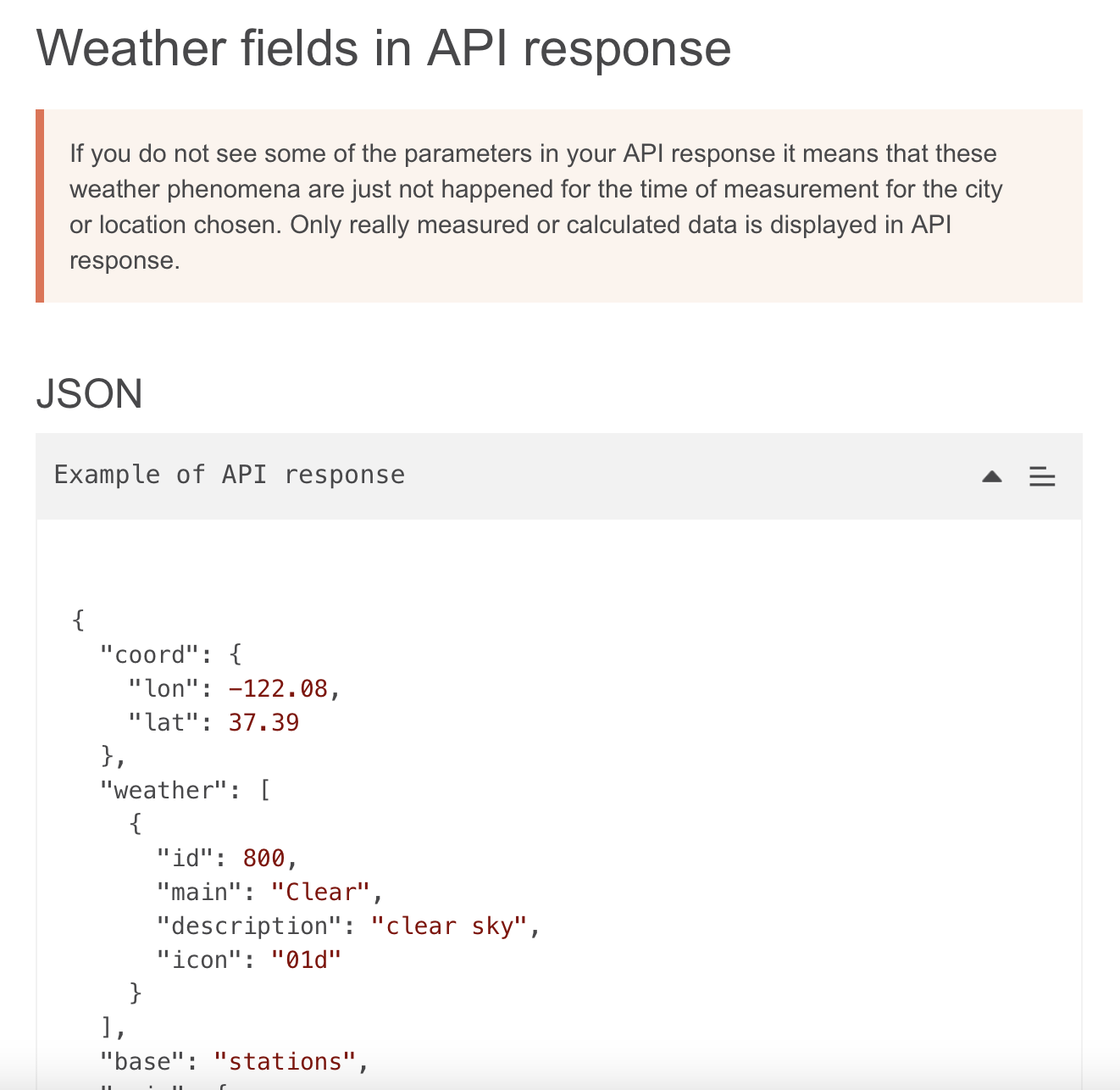 API 데이터 응답을 JSON 형식의 데이터 예시를 볼 수 있다.