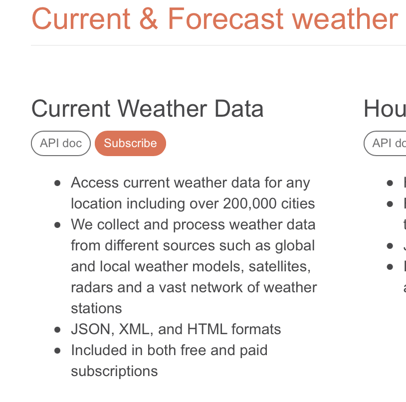Please, sign up to use our fast and easy-to-work weather APIs. As a start to use OpenWeather products, we recommend our One Call API 3.0. For more functionality, please consider our products, which are included in professional collections.