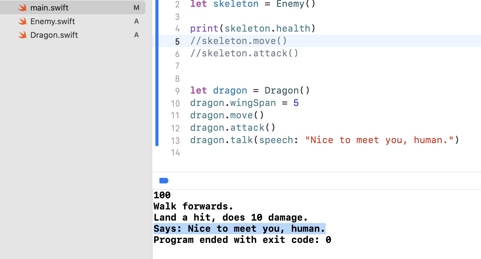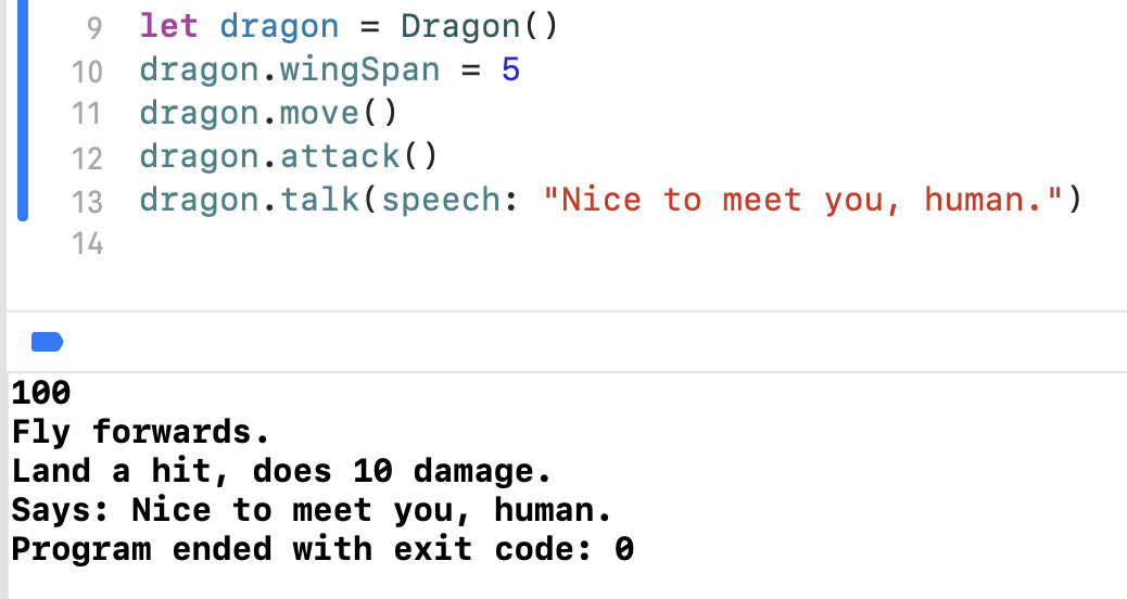 Dragon.swift에서 만든 talk 함수를 당연히도 쓸 수 있다.