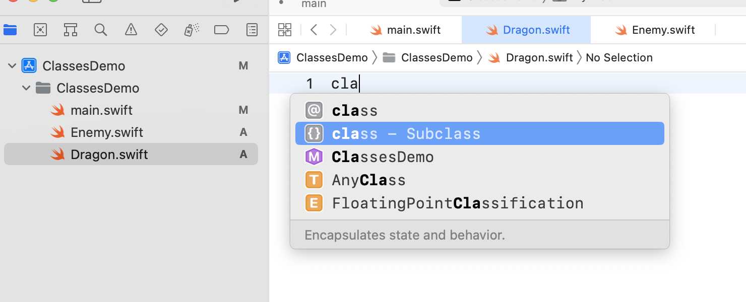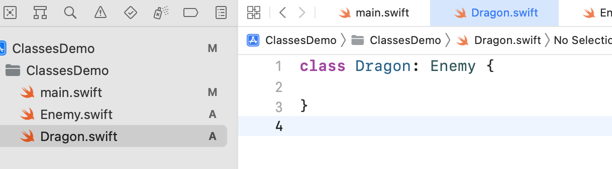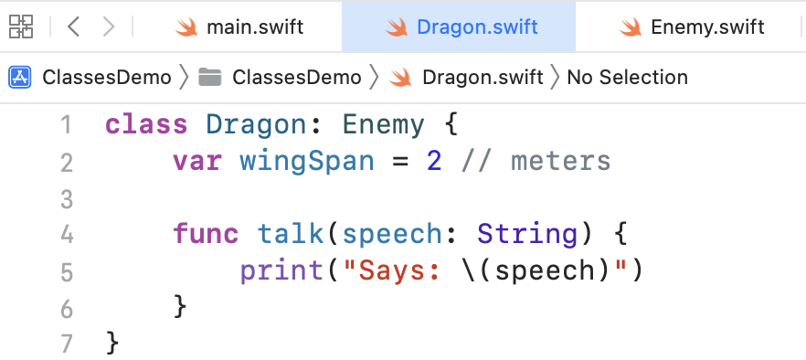 Dragon.swift 파일을 생성해주고 class를 입력하면