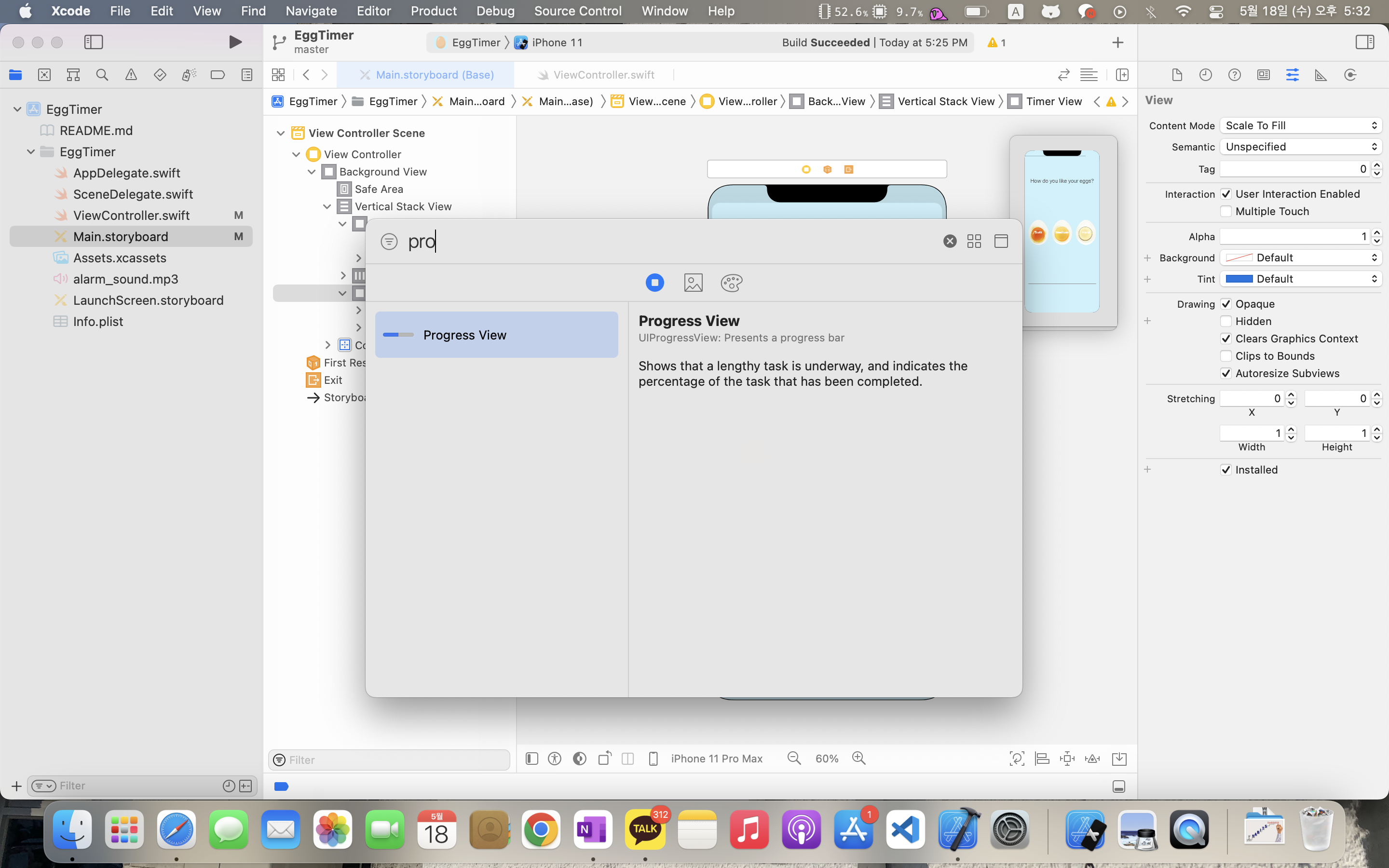 Progress View를 드래그 앤 드롭하여 생성해준다.